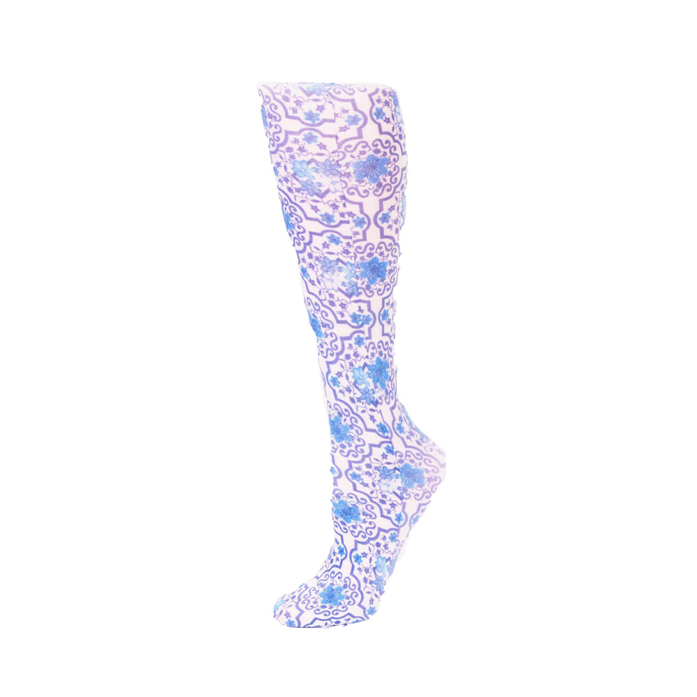 Celeste Stein Celeste-Stein-CMPSQ-3-2116 20-30 mmHg Womens Compression Sock with Tile Pattern, Blue - Queen