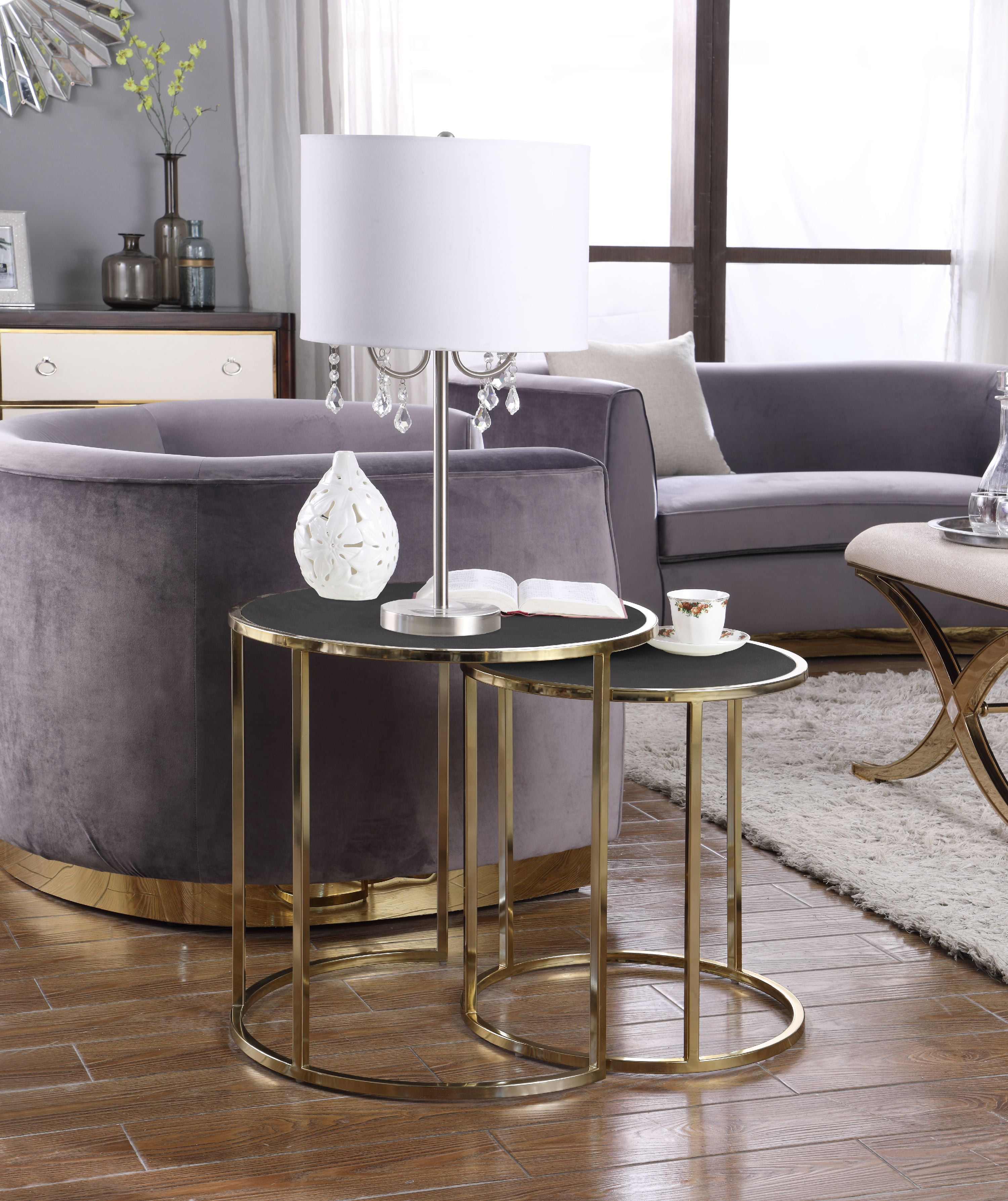 Chic Home FST2967-US Olivia Nightstand Side Table 2 Piece Set Gold Gibbous Moon Frame Pu Leather Top, Modern Contemp