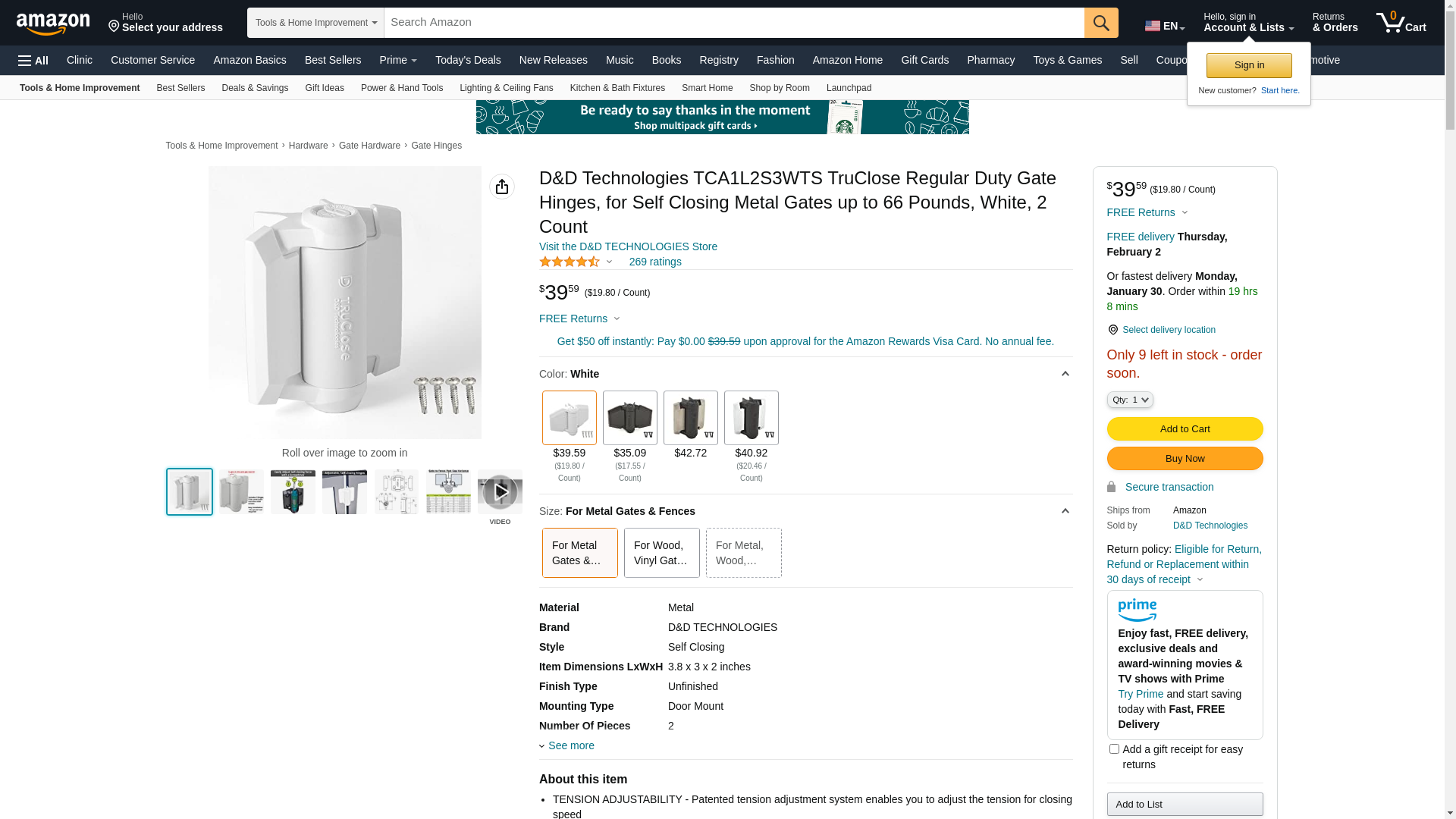 D&D Technologies TCA1L2S3WTS TruClose Regular Duty Gate Hinges, for Self Closing Metal Gates up to 66 Pounds, White, 2 Count