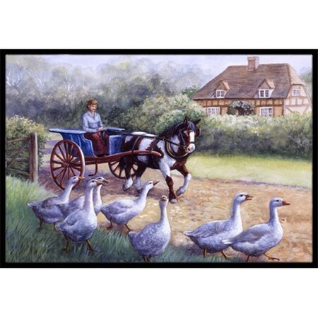 Caroline's Treasures BDBA0351MAT Geese Crossing Before The Horse Doormat 18x27 Front Door Mat Indoor Outdoor Rugs for Entryway, Non Slip Washable Low Pile, 18H X 27W