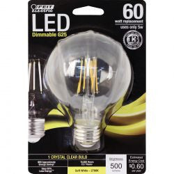 Feit Electric BPG2560/827/LED 5 Watt E26 G25 Clear Soft White LED Dimmable Light Bulb