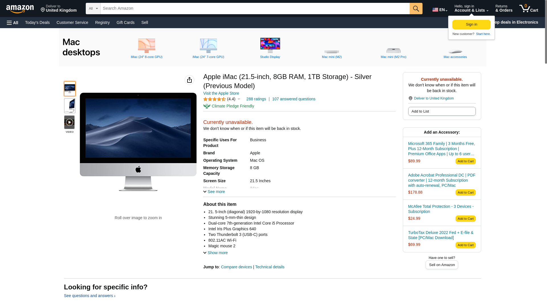 Apple iMac (21.5-inch, 8GB RAM, 1TB Storage) - Silver (Previous Model)