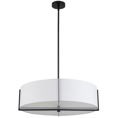 Dainolite Contemporary Preston Pendant in White Fabric for the Ceiling with 4 bulb, E26 socket base 60 Watts max Dimmable and UL Approved for Dry Location with a 1 Year warranty. Great for Foyer/Hall, Living, Office rooms and Commercial use. Features include, Sloped Ceiling Adaptable, Height Adjustable LED Compatible