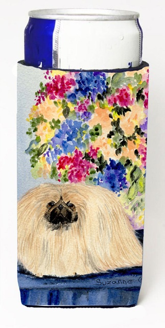 Caroline's Treasures SS8315MUK Pekingese Ultra Hugger for slim cans Can Cooler Sleeve Hugger Machine Washable Drink Sleeve Hugger Collapsible Insulator Beverage Insulated Holder