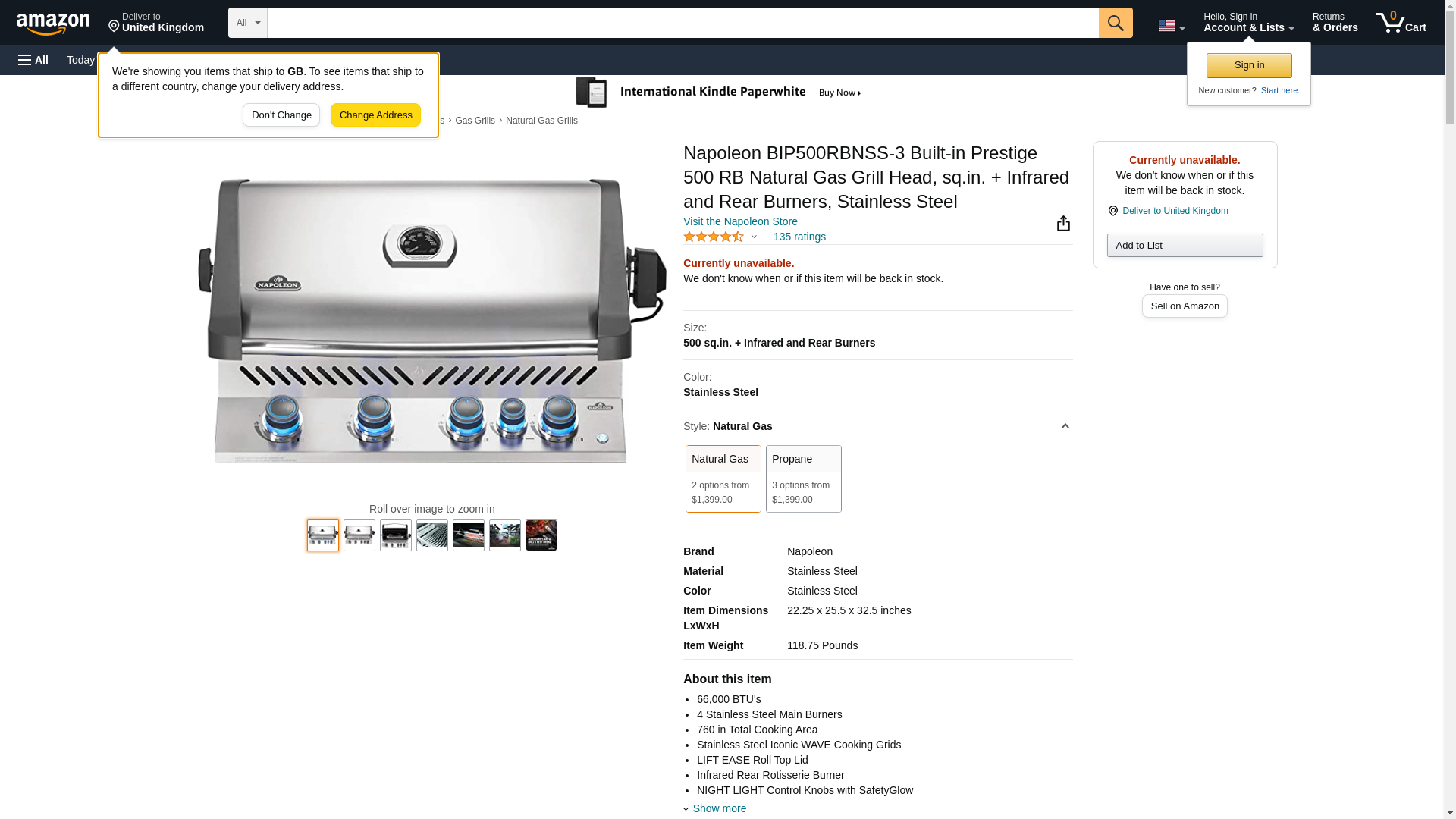 Napoleon Built-in Prestige 500 BBQ Grill, Stainless Steel, Natural Gas - BIP500RBNSS-3 With Infrared Rear Burner, Premium Barbecue For Grilling Masters