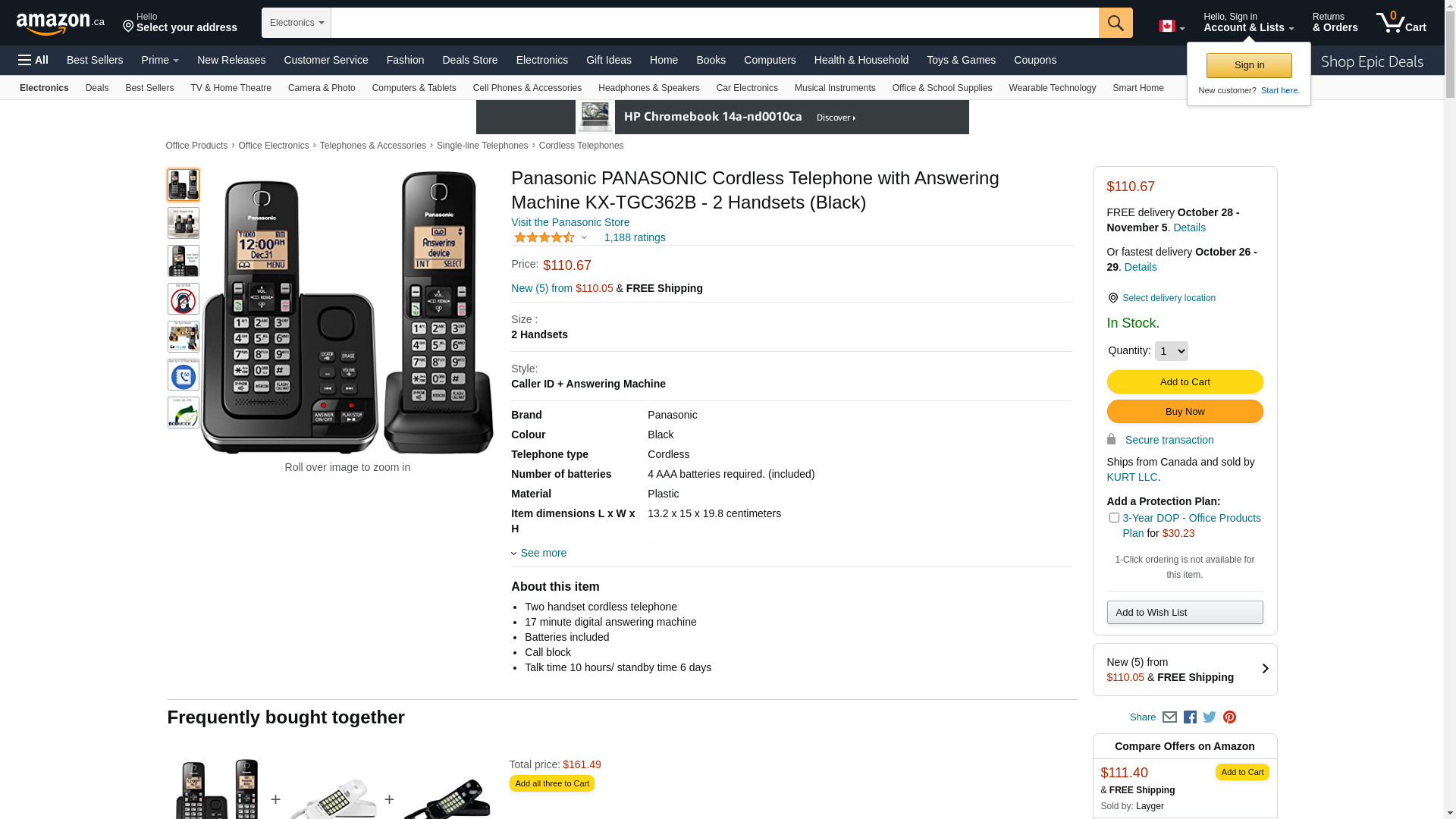 ![]() midwestapplianceparts.com | KX-TGC362B-MSC-P | 1 | 2 | 1 | 1 @ $121.14 |