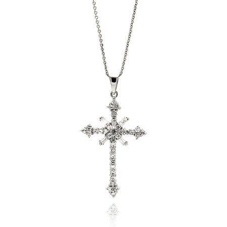 Sterling Silver Rhodium Plated Cross CZ Necklace (Silver Palace, Inc.)