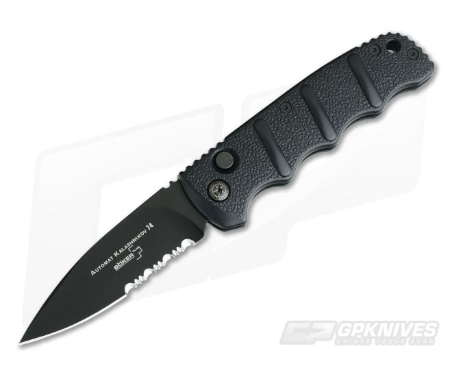 Boker Kalashnikov 74 Automatic Partially Serrated Black Blade Black Aluminum KALS74BKS Knife For Sale