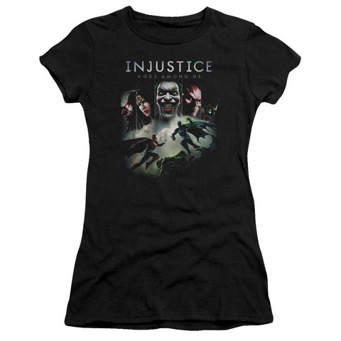 Trevco Injustice Gods Among Us-Key Art Short Sleeve Junior Sheer Tee, Black - Small