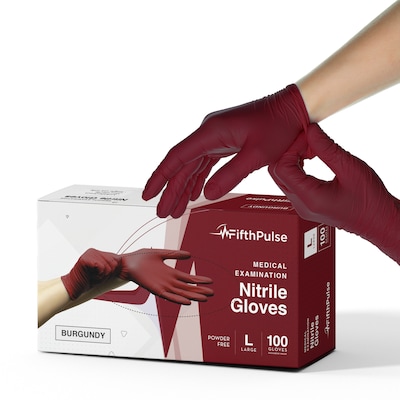 FifthPulse Powder Free Nitrile Gloves, Latex Free, Large, Burgundy, 100/Box (FMN100216) | Quill.com