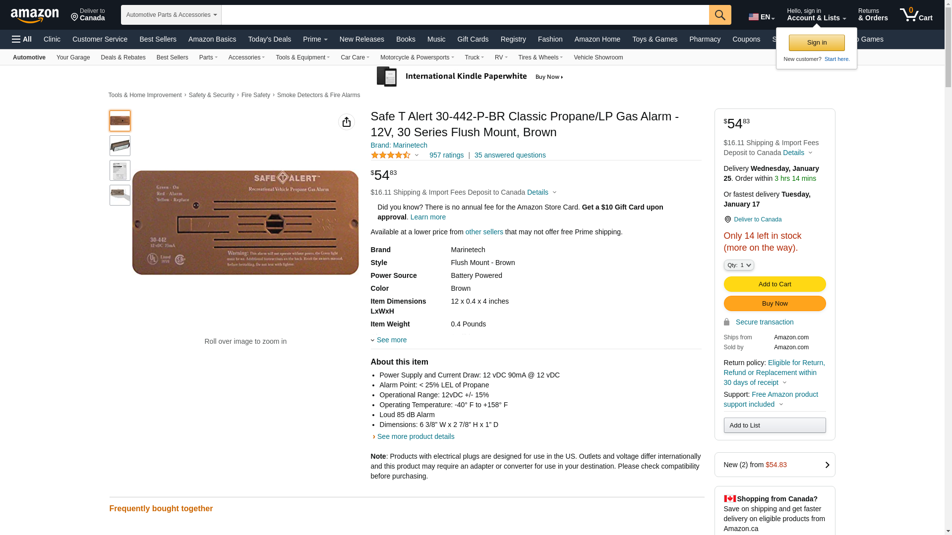 MTI Industries 30-442-P-BR Safe T Alert 30 Series Propane/LP Gas Alarm - Flush Mount, Brown,12 Volt