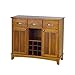 Home Styles Large Server with Wood Top is constructed of hardwood and wood products in a cottage oak finish with a cottage oak wood top. Features three utility drawers and two wood framed cabinet doors with an adjustable shelf for plenty of inside storage. Center wine storage area can be removed for open storage if desired. Brushed steel hardware. Server size: 41.75 x 15.875 x 35.5 high. Wood top size: 41.75 x 17 x .75 high Material Wood;Steel; Style Cottage Finish Light Wood Distressed Finish No Wood Top 3 utility drawers Open storage space Assembled Size Height 36.25 in. Assembled Size Width 17 in. Assembled Size Length 41.75 in.