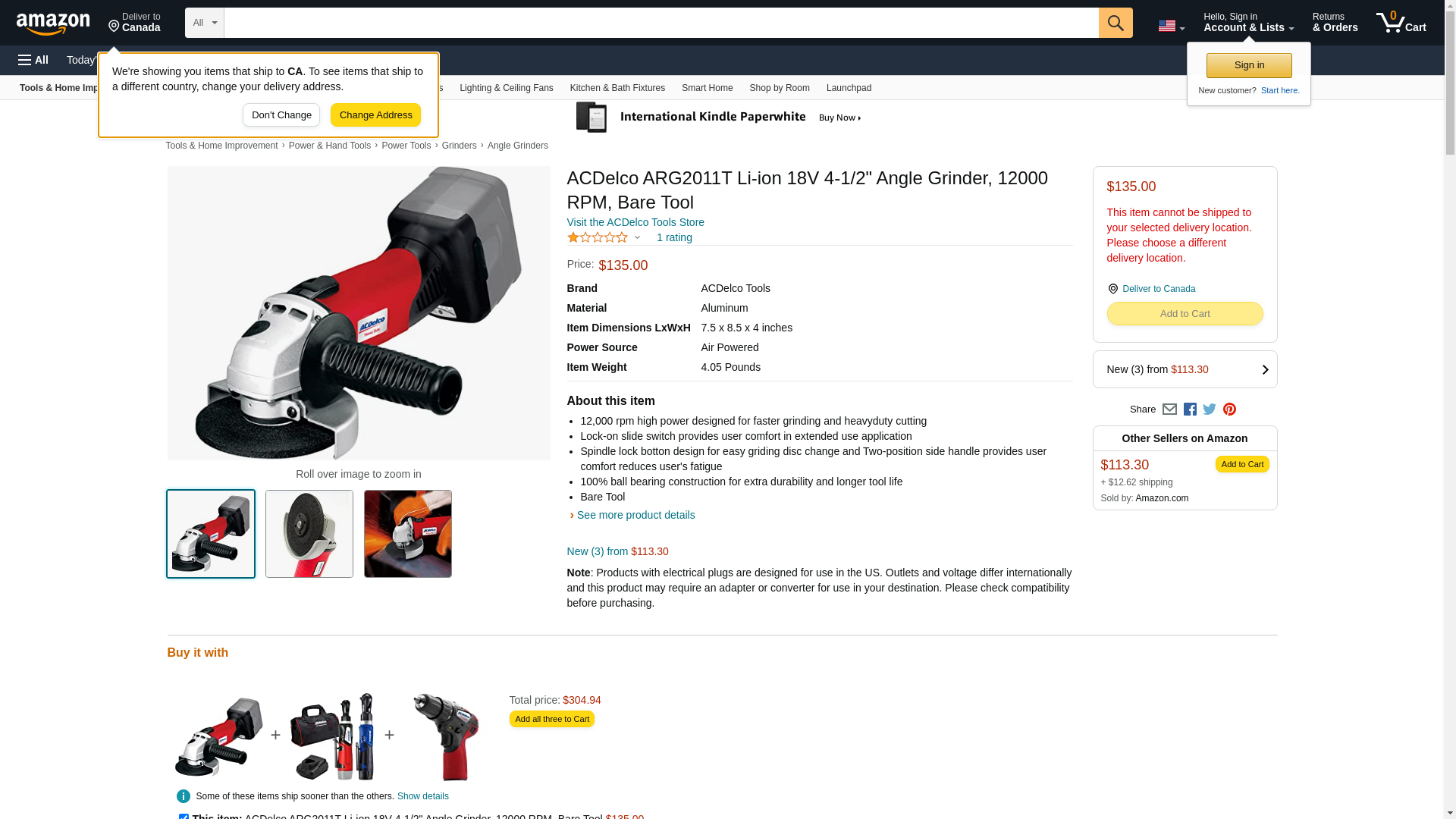 ACDelco ARG2011T Li-ion 18V 4-1/2" Angle Grinder, 12000 RPM, Bare Tool