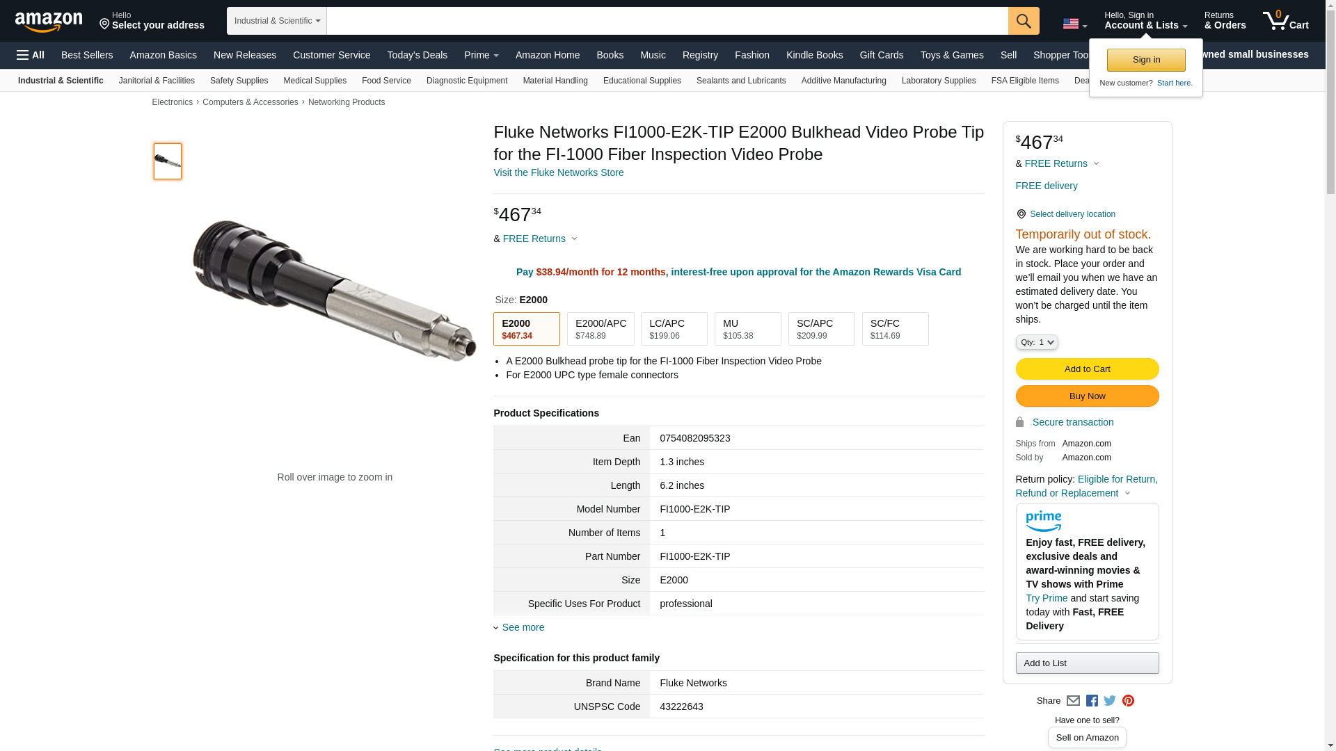 | Feature | A E2000 Bulkhead probe tip for the FI-1000 Fiber Inspection Video Probe |
