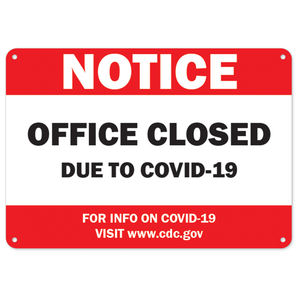 SignMission OS-NS-P-1824-25530 Covid-19 Notice Sign - Notice Office Closed Due to Covid-19