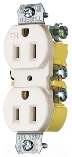 Hubbell Wiring Devices Rcpt, Dup, Tr, 15A 125V, Cut Ears, La - RR15KLATR