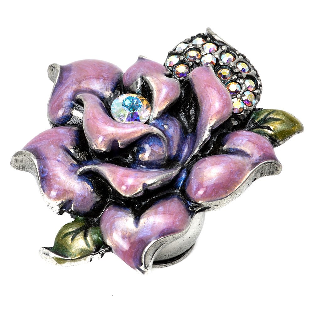 Oak Hollow In the Garden Collection - Large Rose Knob With Swarovski Crystals & Soft Lavender Glaze in Satin Gold with Aurora Borealis by Carpe Diem Hardware - 2870-8-AB | Knobs 4 Less
