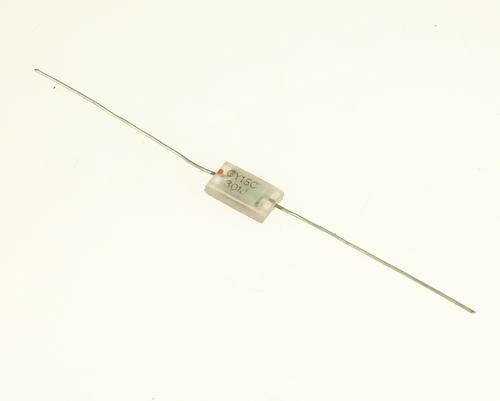 CORNING capacitor: P/N CY15C301J; capacitance = 300 pF, voltage = 500 V , tolerance = 5%, lead length = 37.59 mm (1.480 in), lead type = axial; (item ID: 2020070889)
