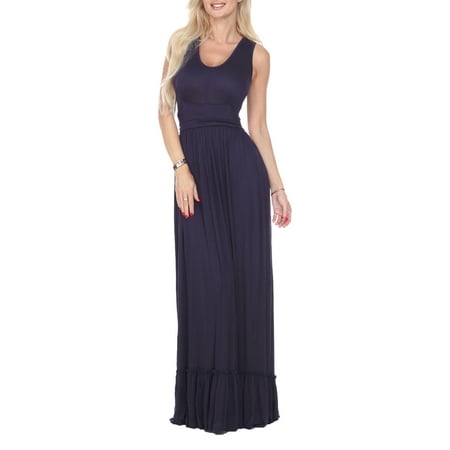 <ul> <li>White Mark Women's Medina Maxi Dress</li> <li>95%Viscose 5%Spandex</li> <li>RucheWaist</li> <li>Ruffled Hemline</li> <li>Scooped V Neck</li> <li>Sleeveless</li> <li>Machine wash cold</li> </ul><p>Country of Origin: Imported