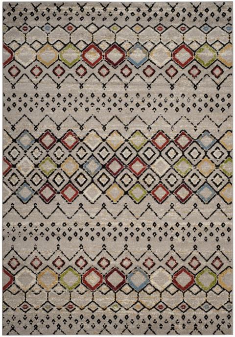 SAFAVIEH Amsterdam Collection Area Rug - 6'7" x 9'2", Light Grey & Multi, Moroccan Boho Design, Non-Shedding & Easy Care, Ideal for High Traffic Areas in Living Room, Bedroom (AMS108G)