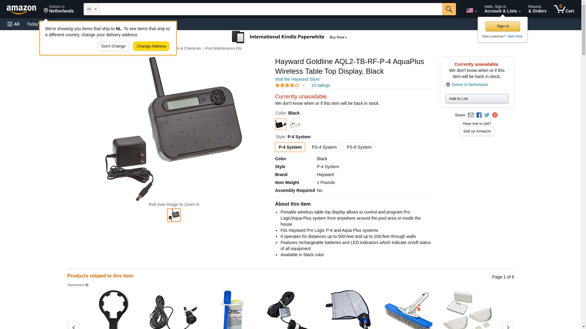 Hayward Goldline AQL2-TB-RF-P-4 AquaPlus Wireless Table Top Display, Black
