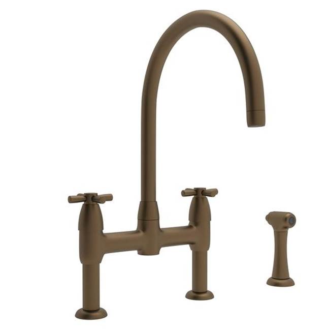 Two Handle Rohl U.4272X-EB-2 Rohl Contemporary Bridge Kitchen Faucet W/ Sidespray & Cross Handles-Lead Free Perrin & Rowe U.4272X-EB-2 Two Handle