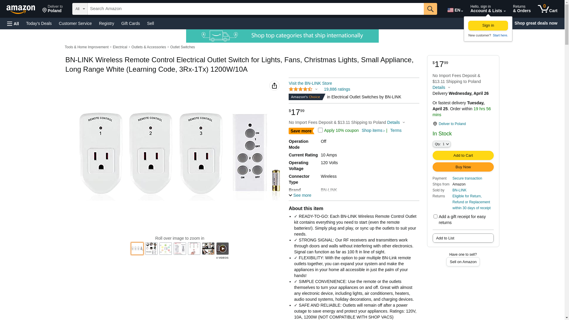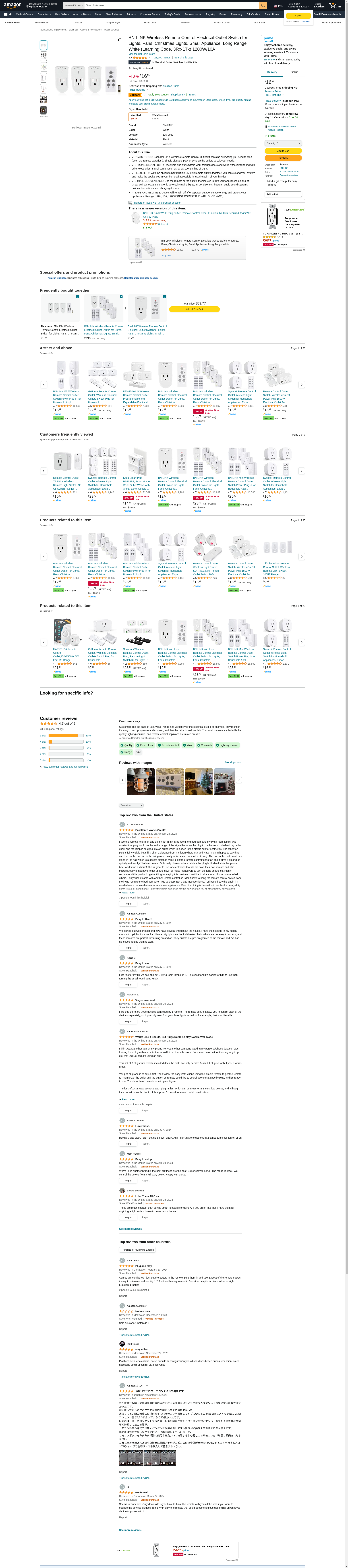 BN-LINK Wireless Remote Control Electrical Outlet Switch for Lights, Fans, Christmas Lights, Small Appliance, Long Range White (Learning Code, 3Rx-1Tx) 1200W/10A: Maxedbuy.com