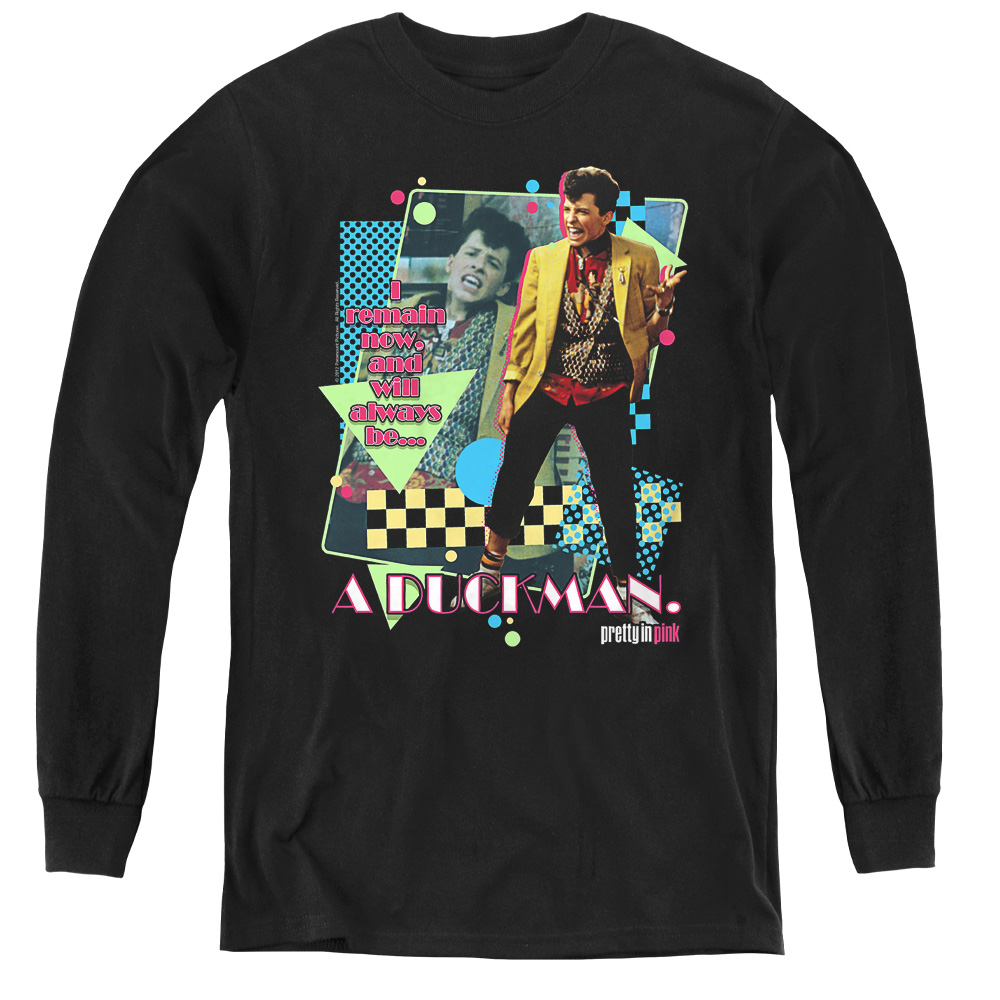 Trevco PAR464-YL-2 Pretty in Pink & A Duckman Youth Long Sleeve Tee Shirt - Black, Medium