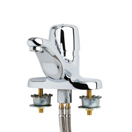 | Feature | <b>Price For:</b> Each <b>Number of Holes</b>: 3 <b>Includes</b>: Mounting hardware <b>Manufacturers Warranty Length</b>: Lifetime Limited Faucet Warranty, 5 yr. Limited Cartridge Warranty, 1 yr. Limited Finish Warranty <b>Finish</b>: Chrome Plated <b>Item</b>: Bathroom Faucet <b>Overall Height</b>: 4-3/4" <b>Residential / Commercial</b>: Commercial <b>Valve Type</b>: Metering <b>Spout Length</b>: 6-5/8" <b>Compliance</b>: ASME A112.18.1/CSA B125.1 |