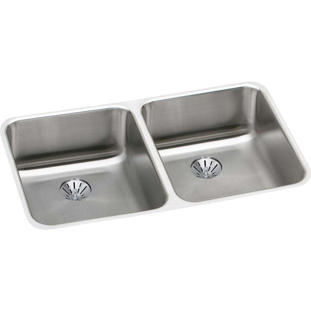 Elkay ELUHAD311845PD Lustertone Classic Double Bowl Undermount Stainless Steel ADA Sink with Perfect Drain