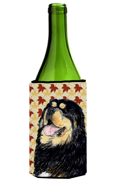 Caroline's Treasures SS4344LITERK Tibetan Mastiff Fall Leaves Portrait Wine Bottle Hugger Bottle Cooler Sleeve Hugger Machine Washable Collapsible Insulator Beverage Insulated Holder