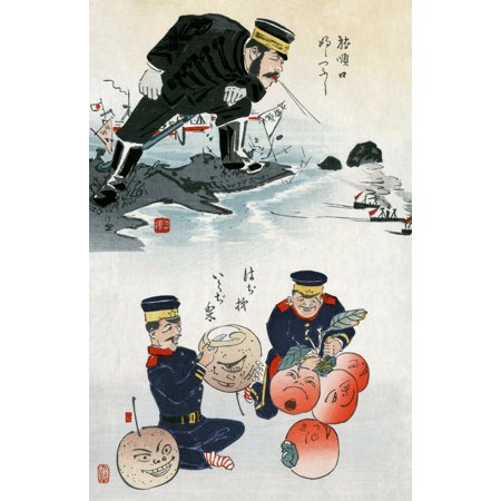 Japanese Cartoon C1895 Na Japanese Cartoon Showing Chinese Military Tactics Color Woodcut By Kobayashi Kiyochika C1895 Rolled Canvas Art - (24 x 36)