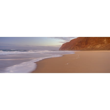 Waves breaking on sandy Barking Sands beach with the Na Pali coast in the background in the evening Kauai Hawaii Poster Print