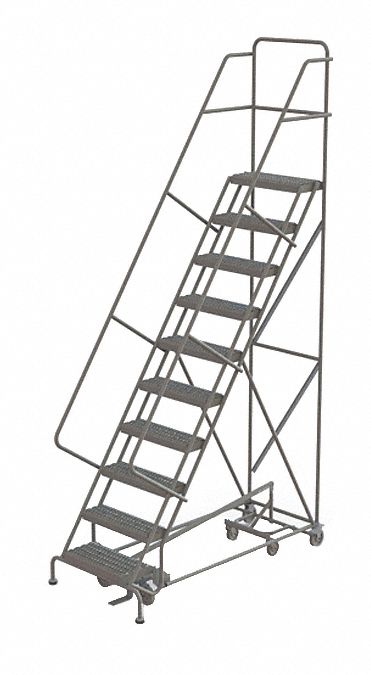 Tri Arc Mfg 10 Step Steel Easy Turn Rolling Ladder, Serrated Tread, Standard Angle - KDED110242