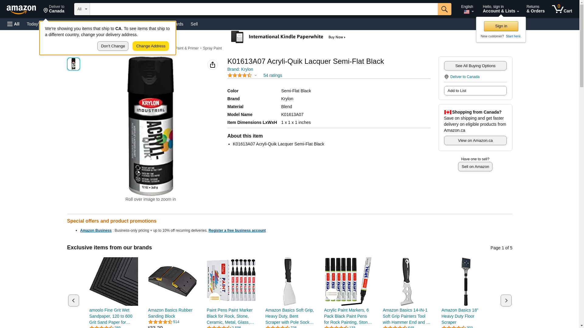 Krylon (5-Ball) Interior-Exterior Paint Semi-Flat Black - K01613A07 - Pkg Qty 6