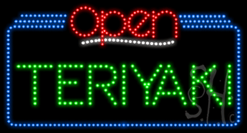 - Teriyaki Open Animated LED Sign is high impact, eye catching, real LED sign.