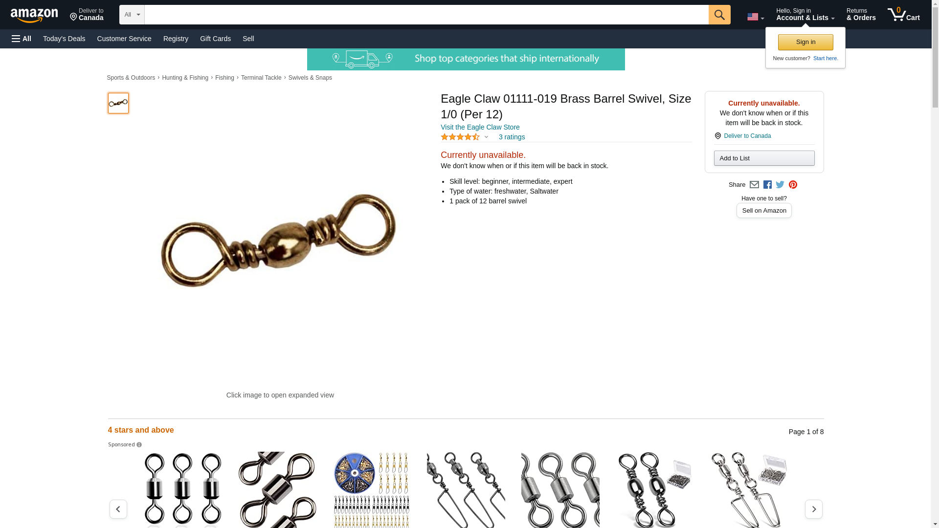 Eagle Claw 01111-019 Brass Barrel Swivel, Size 1/0 (Per 12)