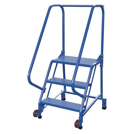 Vestil LAD-TRN-60-3-P Tip-N-Roll Ladder, Perforated, 3 Step, 58 Degree, Blue