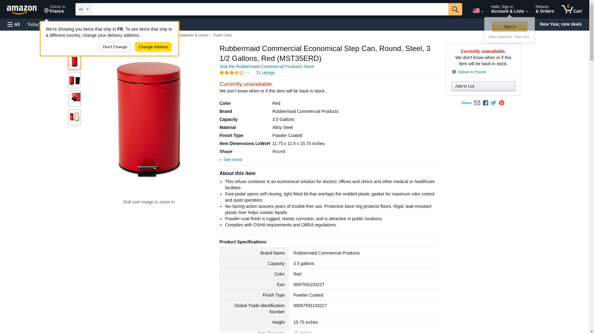 Rubbermaid Commercial Economical Step Can, Round, Steel, 3 1/2 Gallons, Red (MST35ERD)