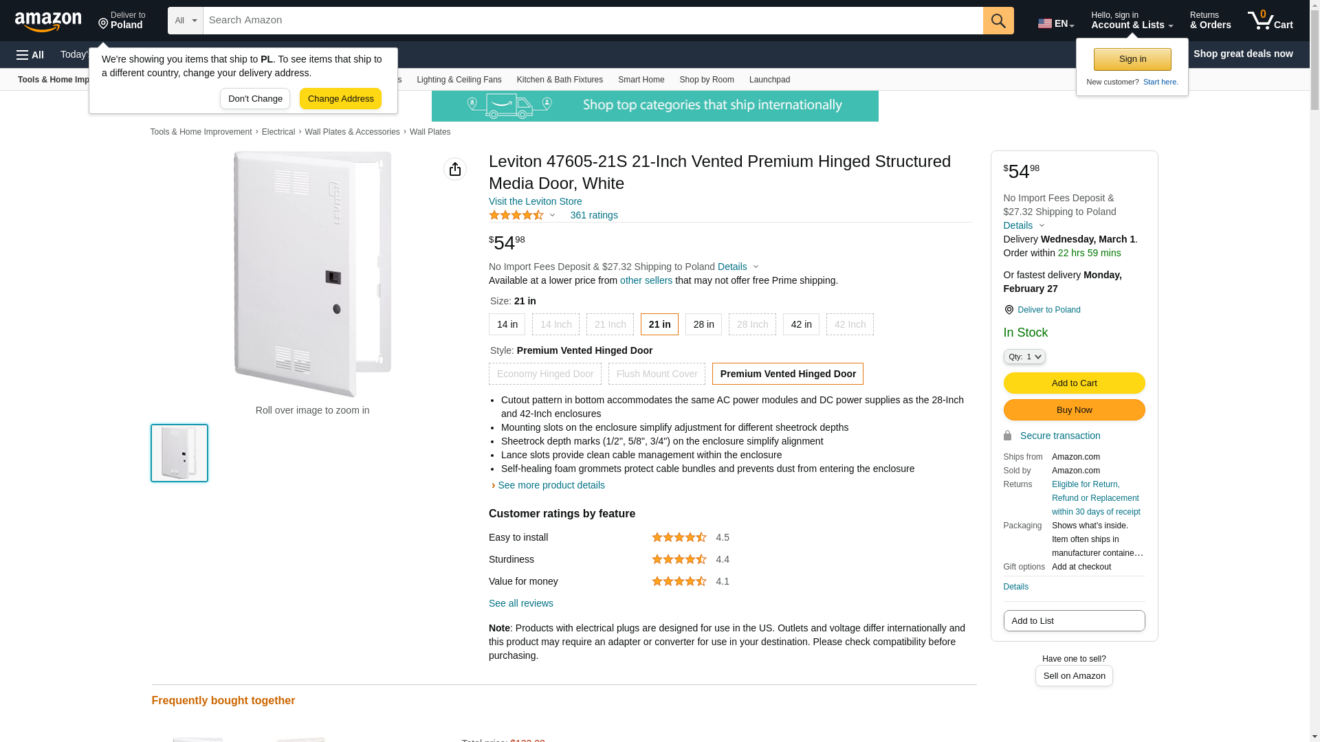 Leviton 47605-21S Structured Media Center Hinged Cover 21 Inch Powder Coat Steel - White (Pkg of 10)