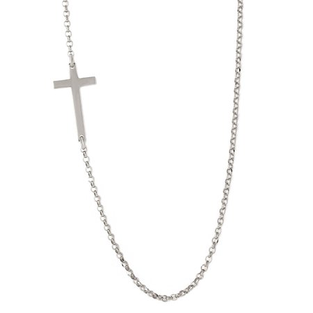 Sterling Silver Rhodium Plated Rolo Necklace With Cross (Silver Palace, Inc.)