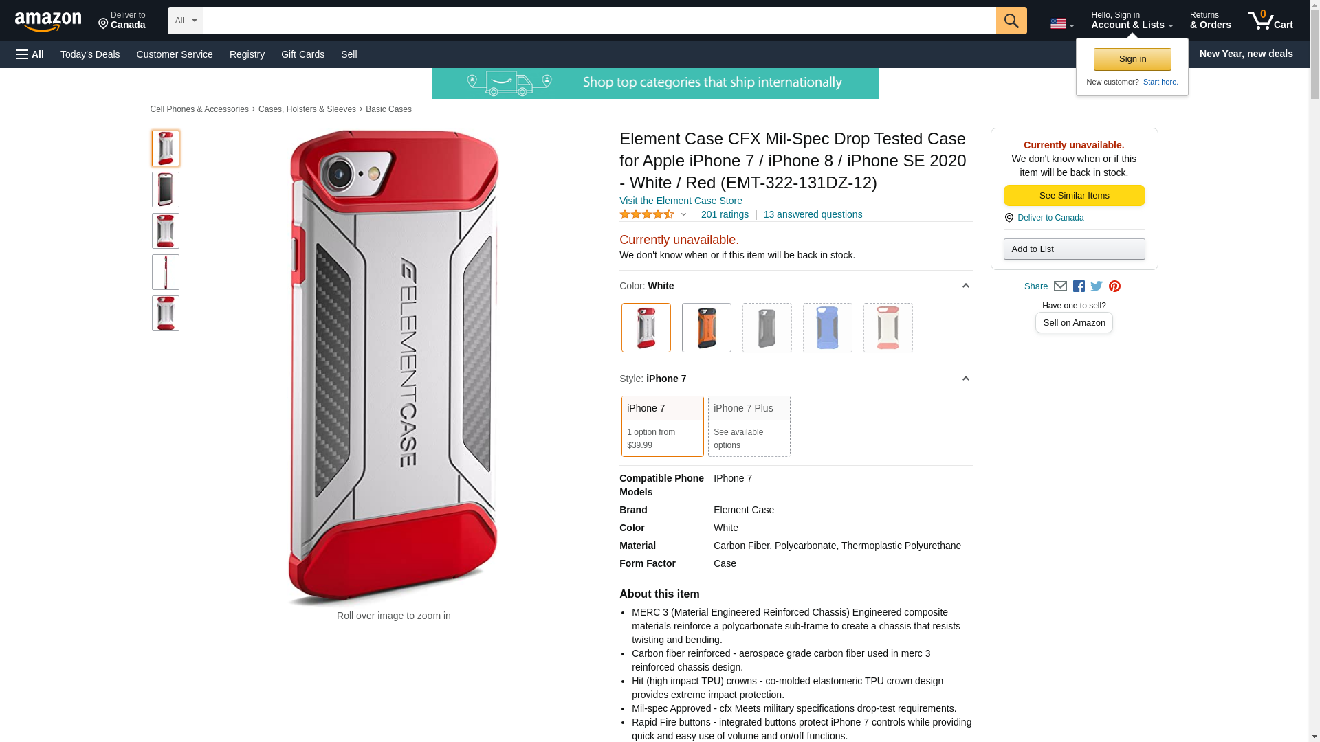 Element Case CFX Mil-Spec Drop Tested Case for Apple iPhone 7 / iPhone 8 / iPhone SE 2020 - White/Red (EMT-322-131DZ-12)