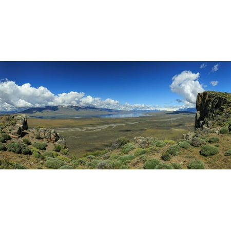 Panoramic Images Stretched Canvas Art - View of Sarmiento Lake and China River, Torres del Paine National Park, Patagonia, Chile - Medium 12 x 24 inch Wall Art Decor Size.