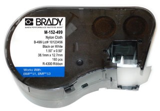 Brady M-152-499 Nylon Cloth B-499 Black on White Label Maker Cartridge, 1-1/2" Width x 1/2" Height, For BMP51/BMP53 Printers