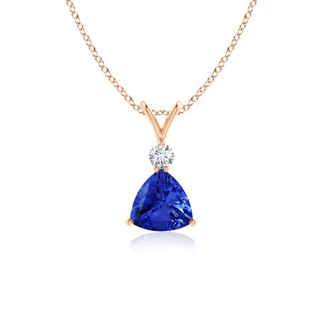 <ul> <li>V Bale Diamond and Trillion Tanzanite Solitaire Pendant in 14K Rose Gold (6mm Tanzanite)</li> <li>Approximate Carat Total Weight 0.78 ct</li> <li>18 inch 14K Rose Gold Chain Shipped Free With Pendant</li> <li>Tanzanites are Heat treated for enhanced brilliance and lustre.</li> <li>Free Certificate of Authenticity and 30-Days Easy Returns.</li> <li>*Get a FREE Gemstone Pendant in Silver w/o Chain</li> </ul>