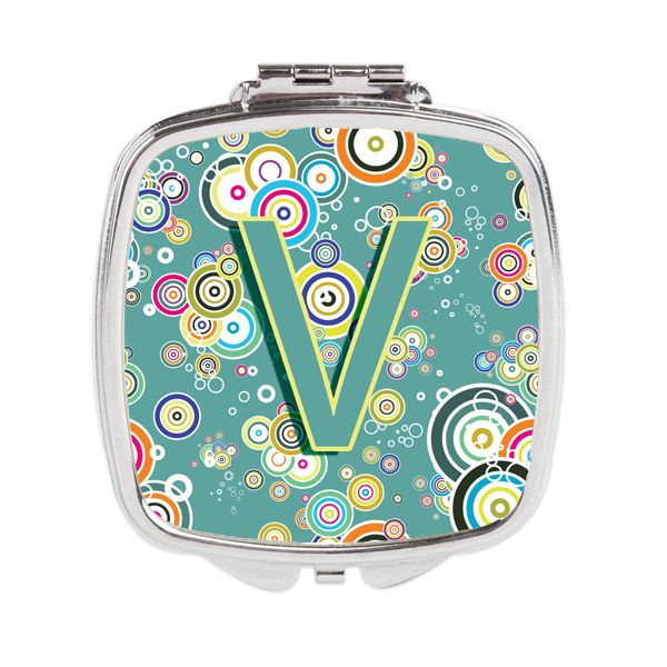 Letter V Circle Circle Teal Initial Alphabet Compact Mirror