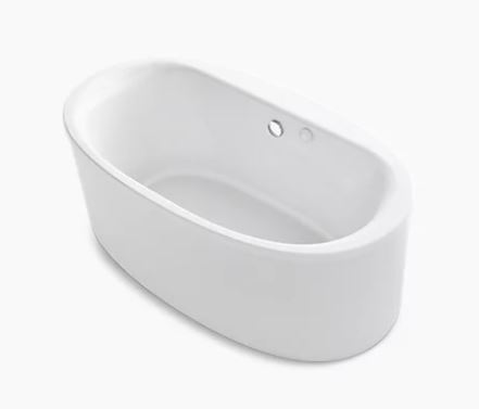 KOHLER K-1966-GH-0 SUNSTRUCK 65 5/8 INCH X 36 INCH ACRYLIC FREE STANDING OVAL SOAKING AIR BATHTUB WITH CENTER DRAIN,...