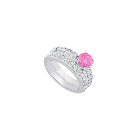 Fine Jewelry Vault UBJS227ABW14DPSRS8.5 14K White Gold Pink Sapphire & Diamond Engagement Ring with Wedding Band Set,
