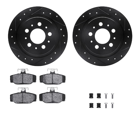 8512-27026, Rotors-Drilled and Slotted-Black w/ 5000 Advanced Brake Pads incl. Hardware, Zinc Coated