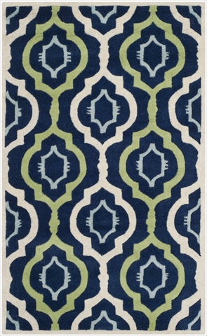 Safavieh CHT747C-4 4 Ft. x 6 Ft. Small Rectangle, Contemporary Chatham Dark Blue And Multi Hand Tufted Rug